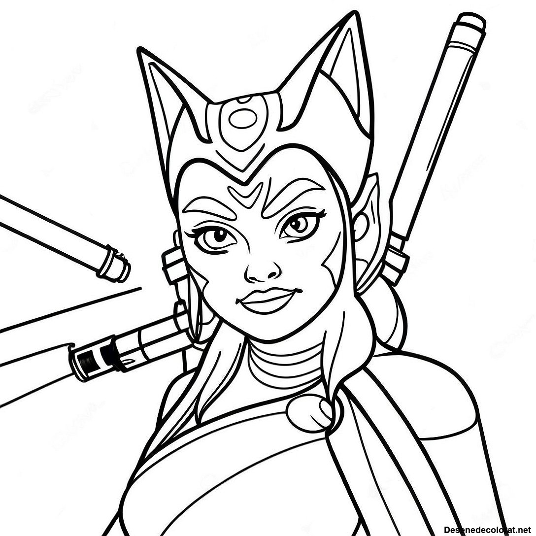Ahsoka Tano Cu Sabii Laser Pagina De Colorat