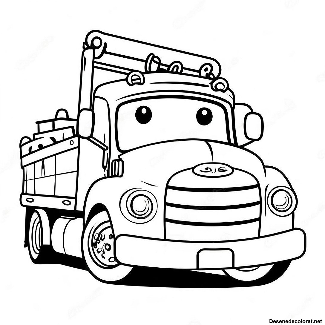 Camion De Remorcare Drăguț Cu Un Zâmbet - Pagina De Colorat