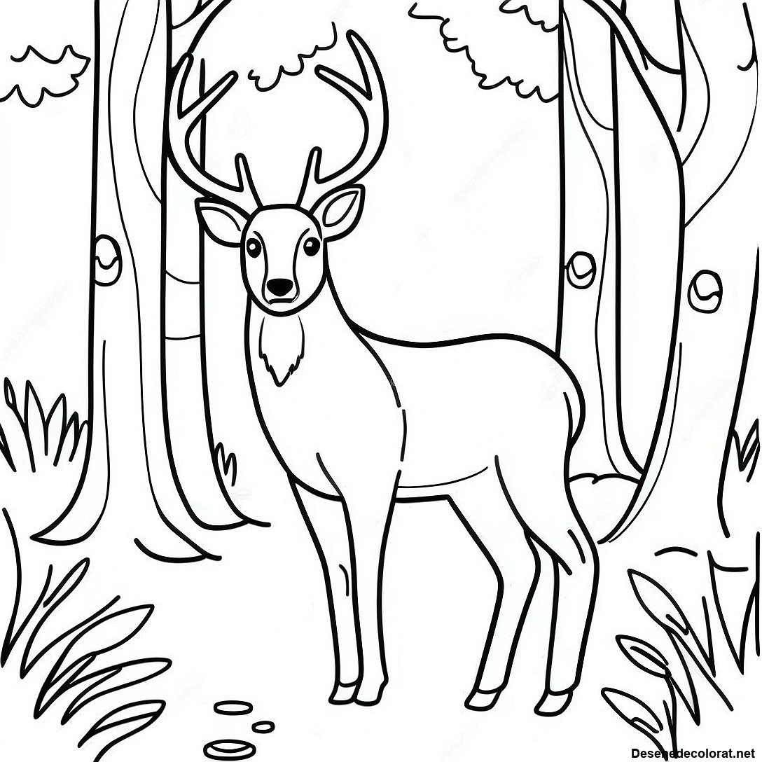 Cerb Majestuos Într-O Pădure - Pagina De Colorat