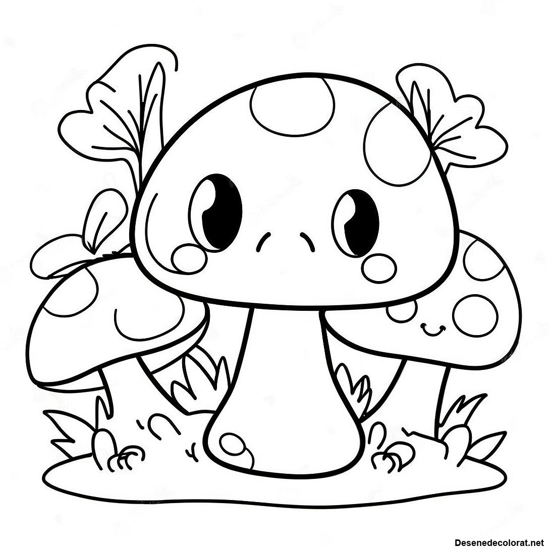 Descarcă PDF imprimabil pentru Ciuperci Drăguțe De Desene Animate Desen De Colorat