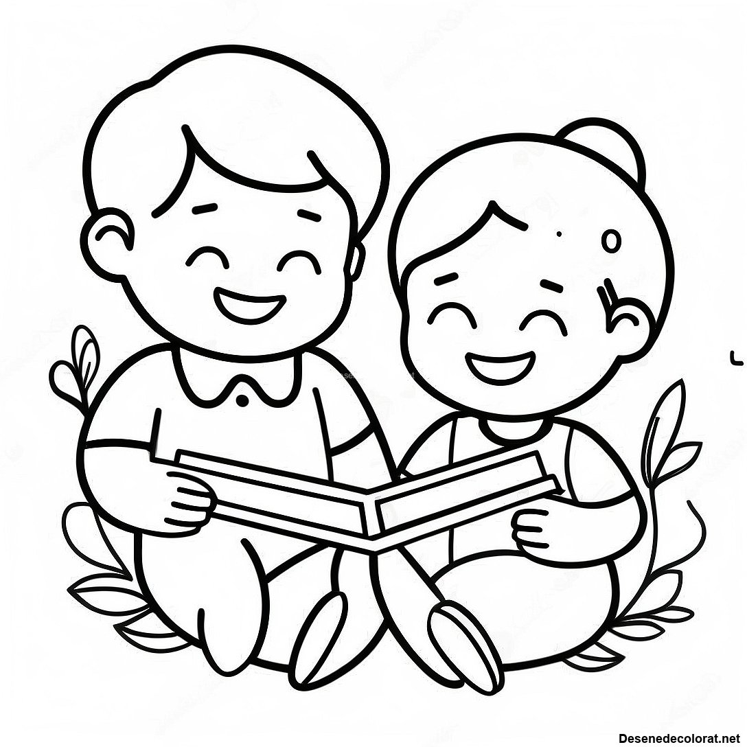 Descarcă PDF imprimabil pentru Copii Fericiți Citind - Pagina De Colorat
