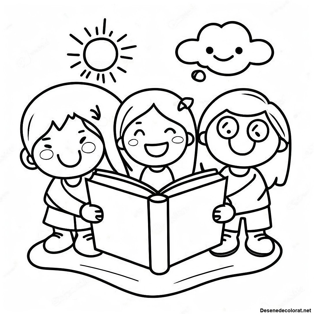 Descarcă PDF imprimabil pentru Copii Fericiți Citind - Pagina De Colorat