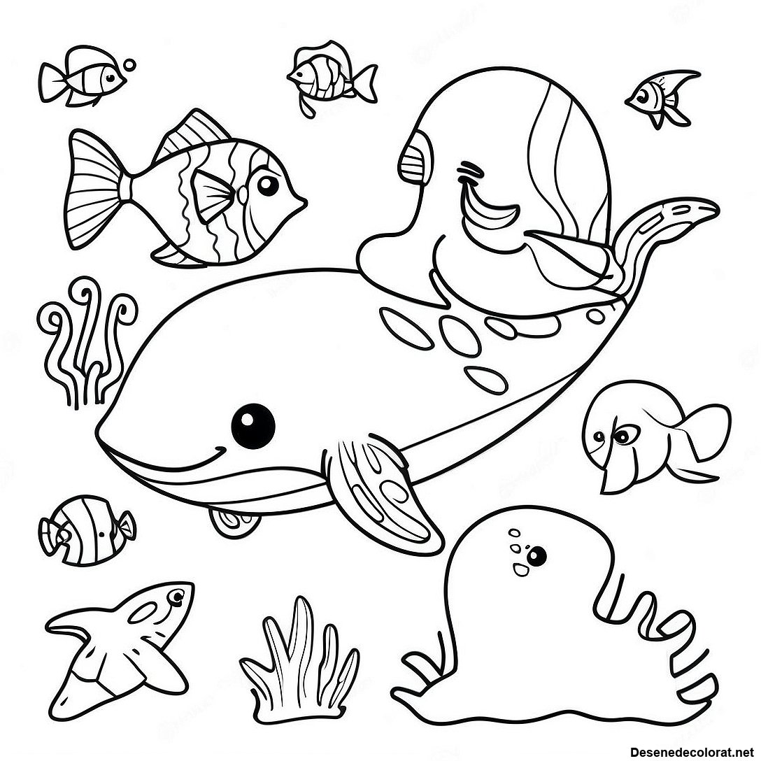 Desen De Colorat Cu Animale Marine