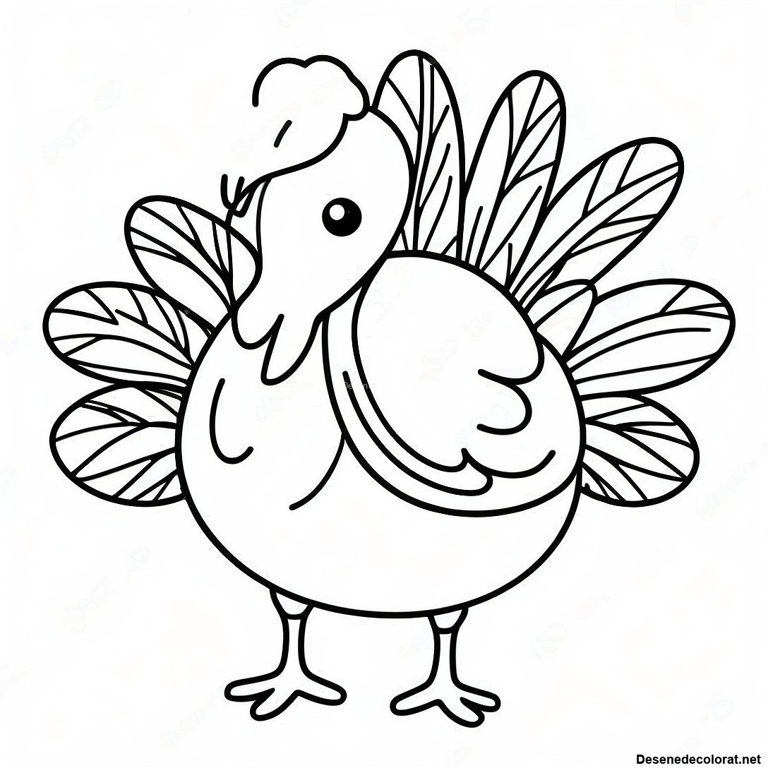 Desen De Colorat Cu Curcan Fericit Cu Pene Colorate