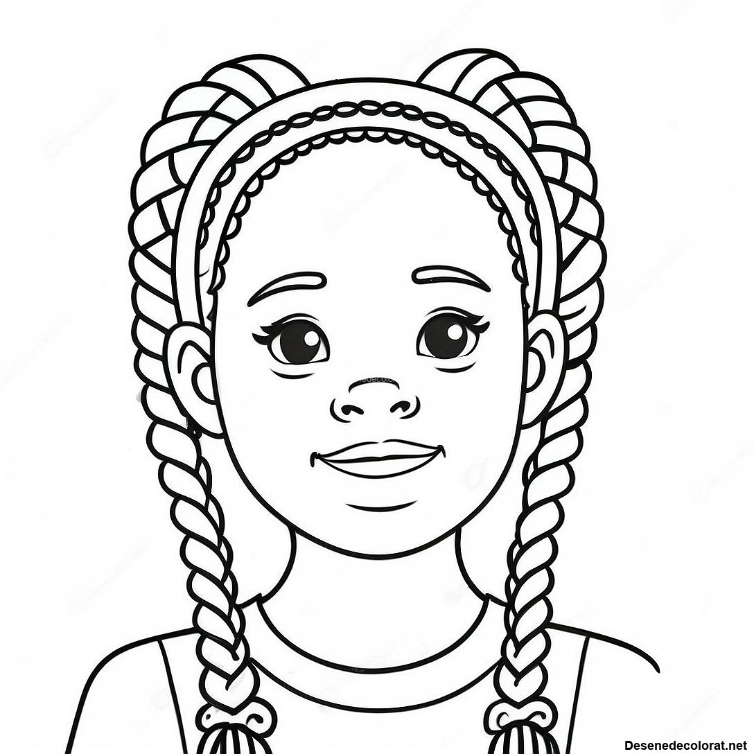 Fetiță Drăguță Cu Împletituri Pagină De Colorat