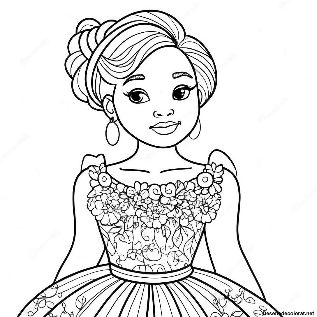 Descarcă PDF imprimabil pentru Fetiță Elegantă Într-O Rochie Pagină De Colorat