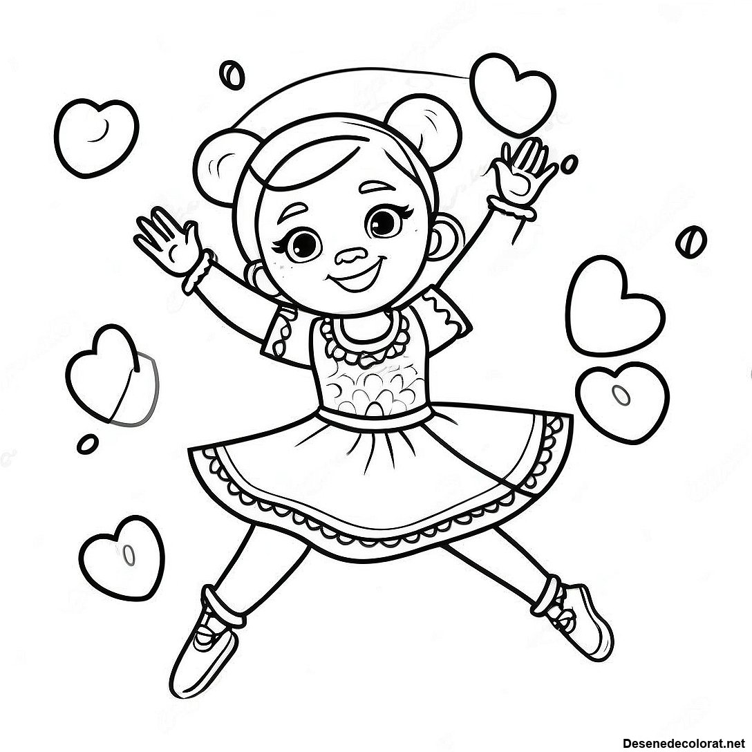 Descarcă PDF imprimabil pentru Fetiță Fericită Dansând Pagină De Colorat