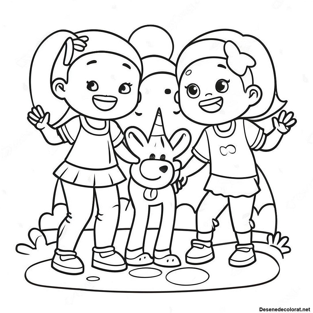 Descarcă PDF imprimabil pentru Fetiță Jucându-Se Cu Prietenii Pagină De Colorat