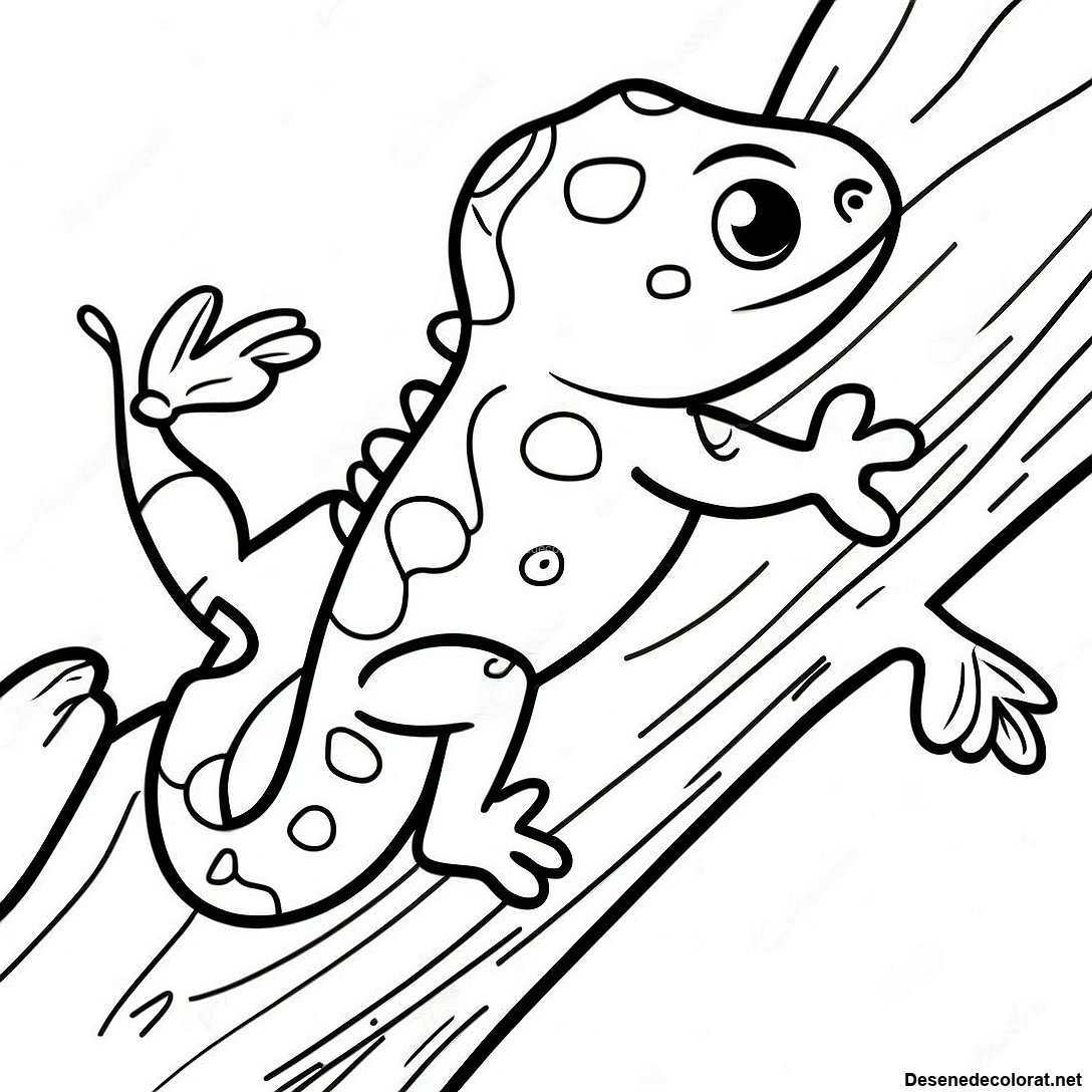 Descarcă PDF imprimabil pentru Gecko Urcând Pe Un Copac Desen De Colorat