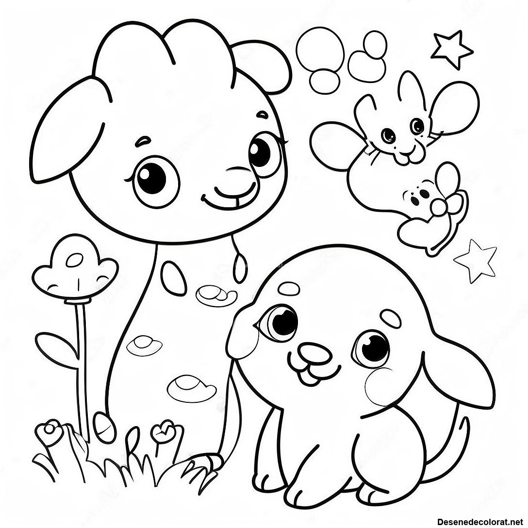 Descarcă PDF imprimabil pentru Pagina De Colorat Cu Animale Roz Drăguțe