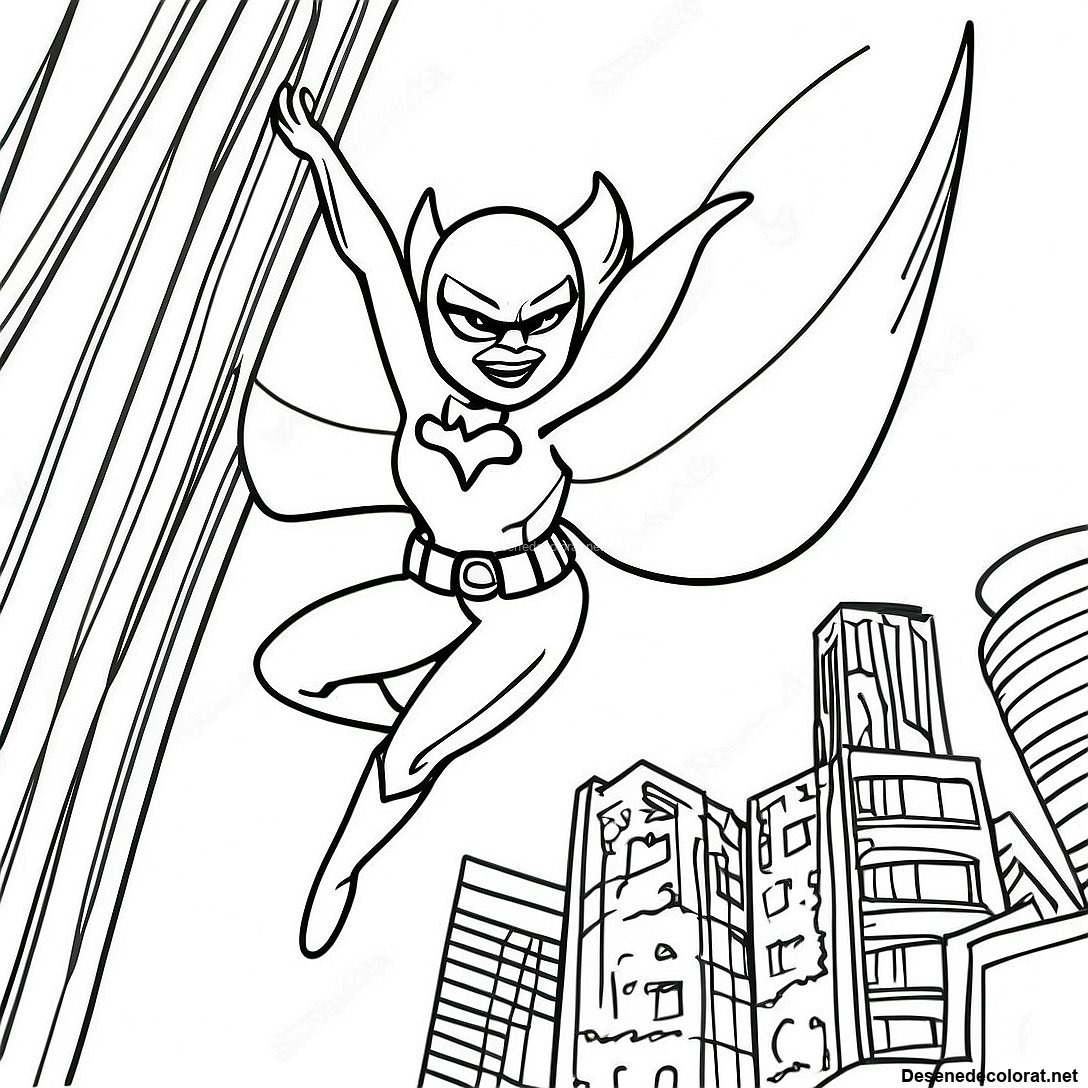 Pagina De Colorat Cu Batgirl Zburand Prin Oras 107667 44777