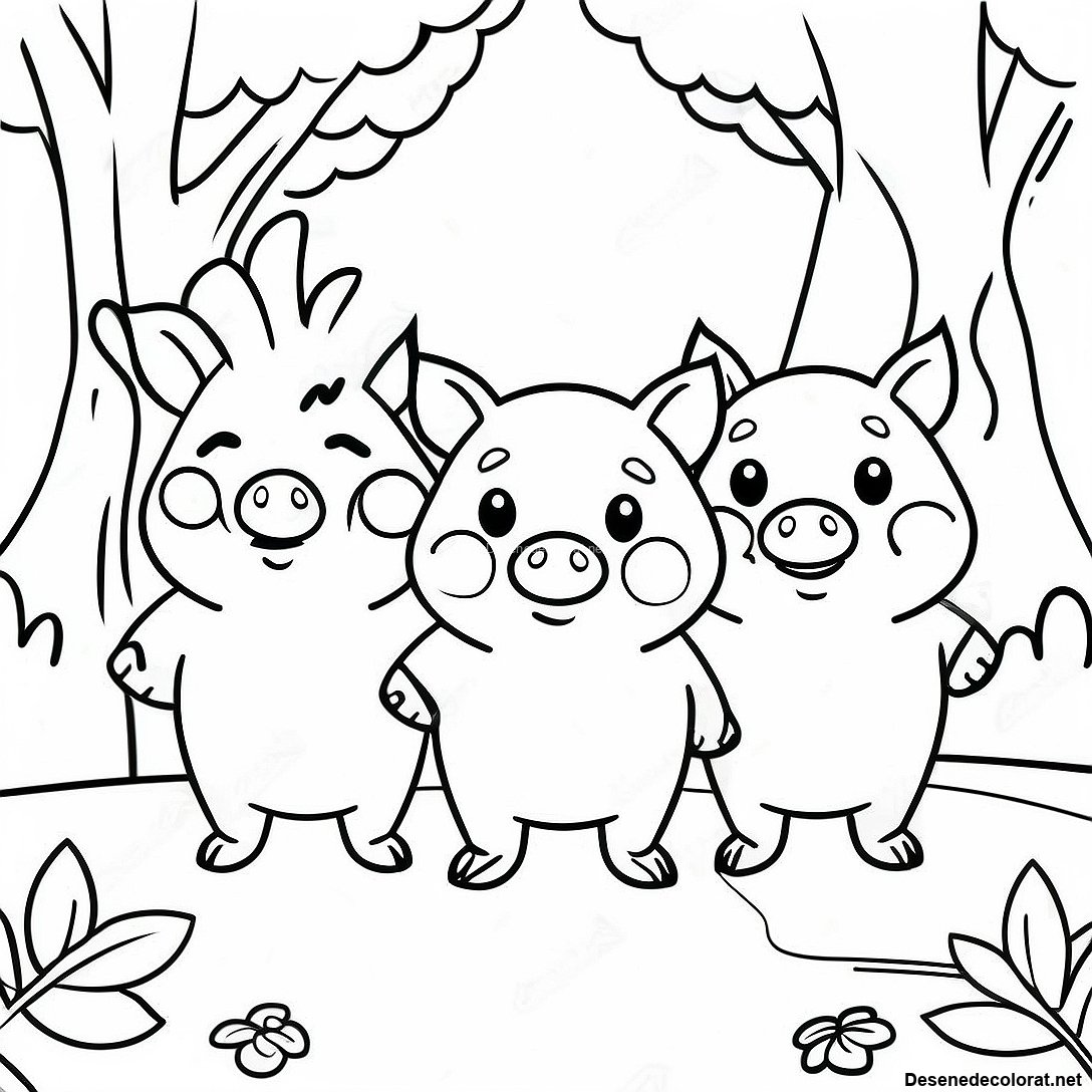 Pagina De Colorat Cu Cei Trei Purceluși În Pădure