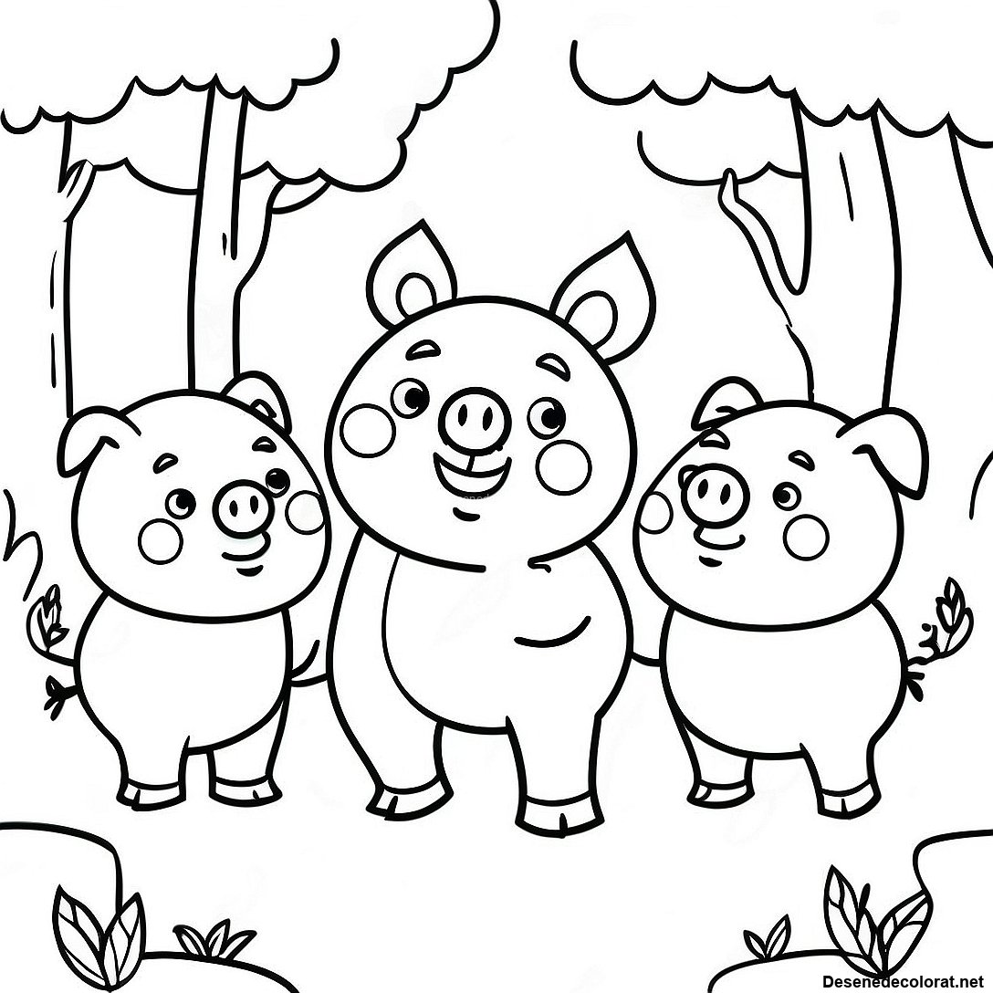 Descarcă PDF imprimabil pentru Pagina De Colorat Cu Cei Trei Purceluși În Pădure