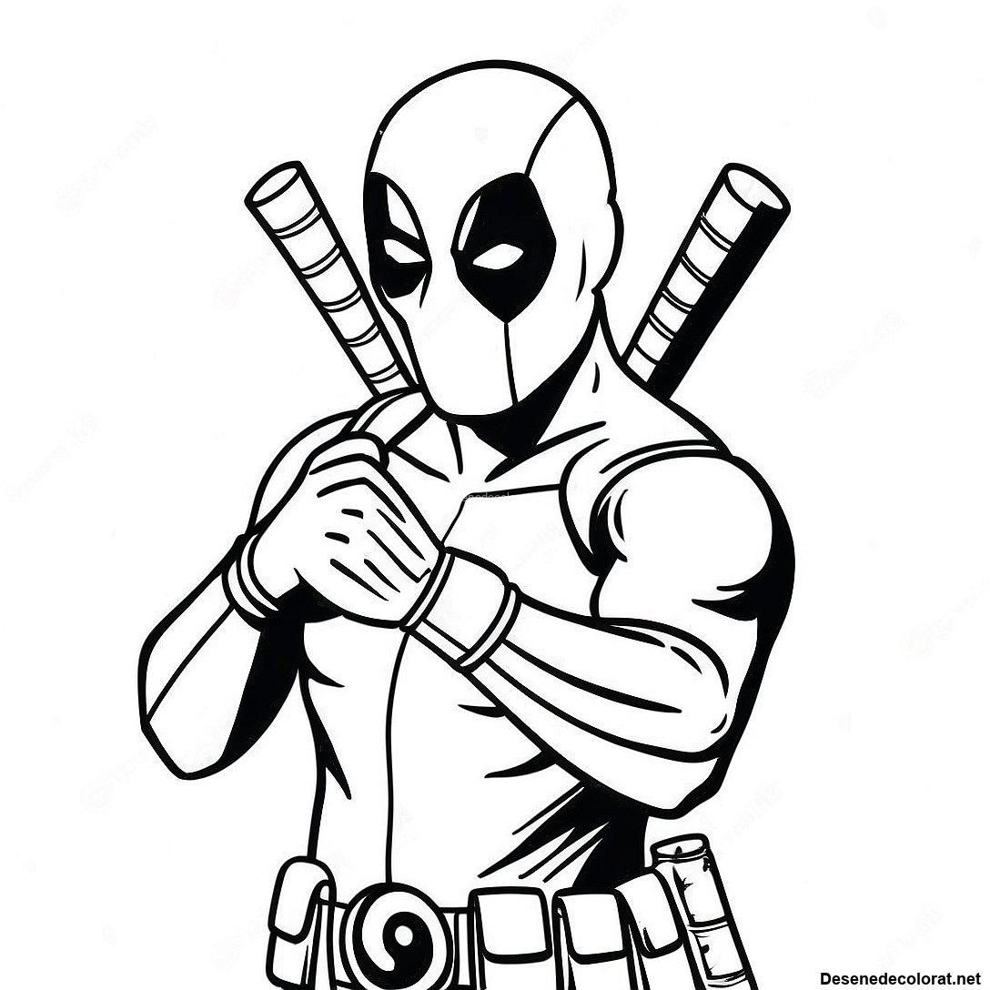 Descarcă PDF imprimabil pentru Pagină De Colorat Cu Deadpool În Acțiune