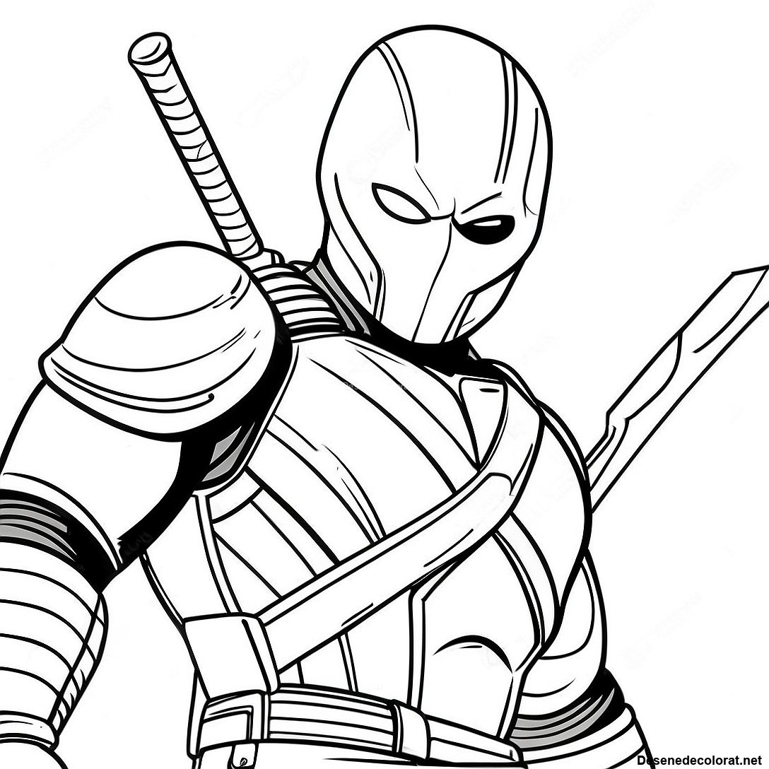 Descarcă PDF imprimabil pentru Pagina De Colorat Cu Deathstroke Cu Sabie