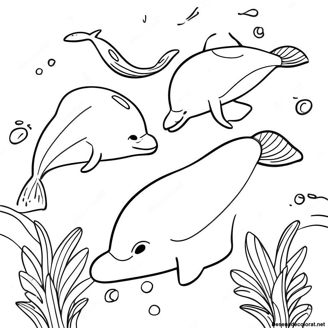 Descarcă PDF imprimabil pentru Pagina De Colorat Cu Delfini Jucăuși Înotând