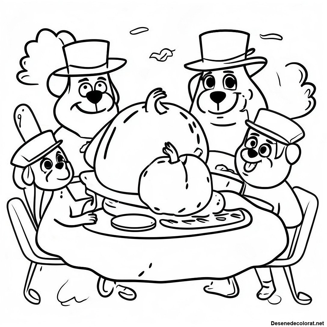 Descarcă PDF imprimabil pentru Pagina De Colorat Cu Festinul De Ziua Recunoștinței Al Familiei Bluey