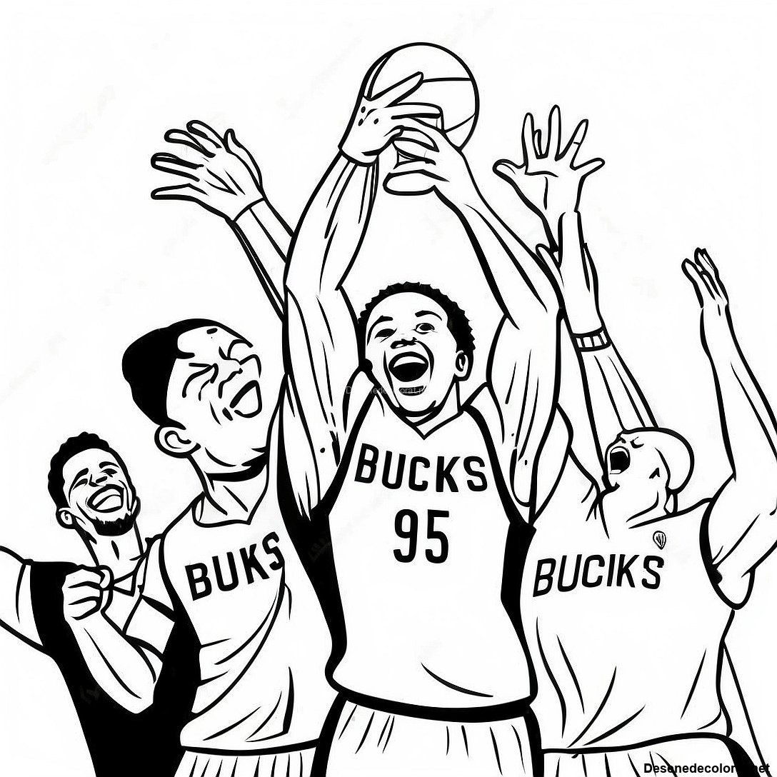 Pagina De Colorat Cu Jucatorii Bucks Sarbatorind