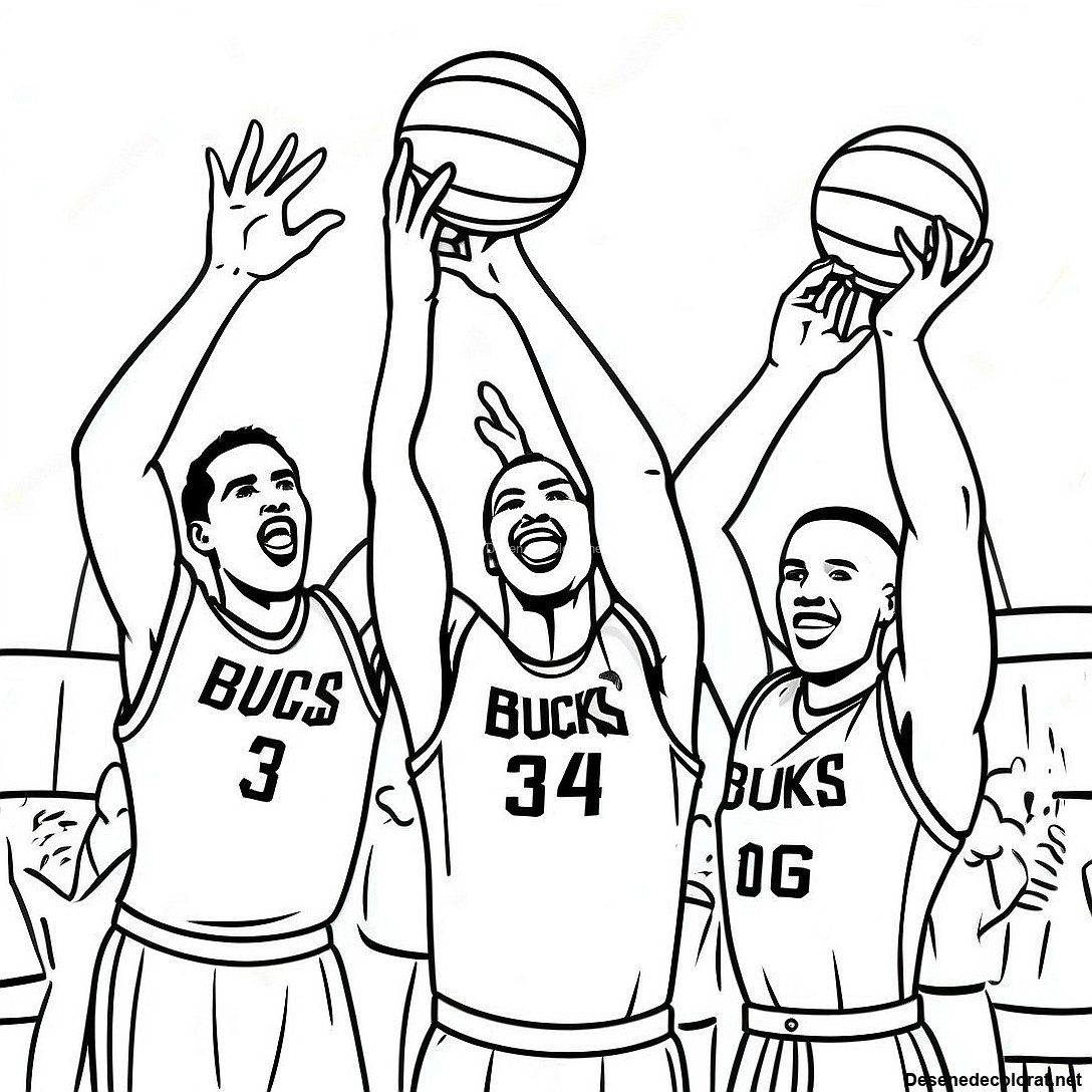 Pagina De Colorat Cu Jucătorii Bucks Sărbătorind