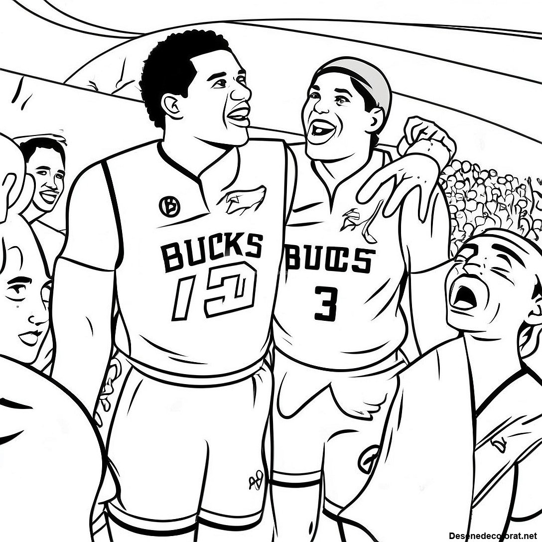 Pagina De Colorat Cu Jucătorii Bucks Sărbătorind