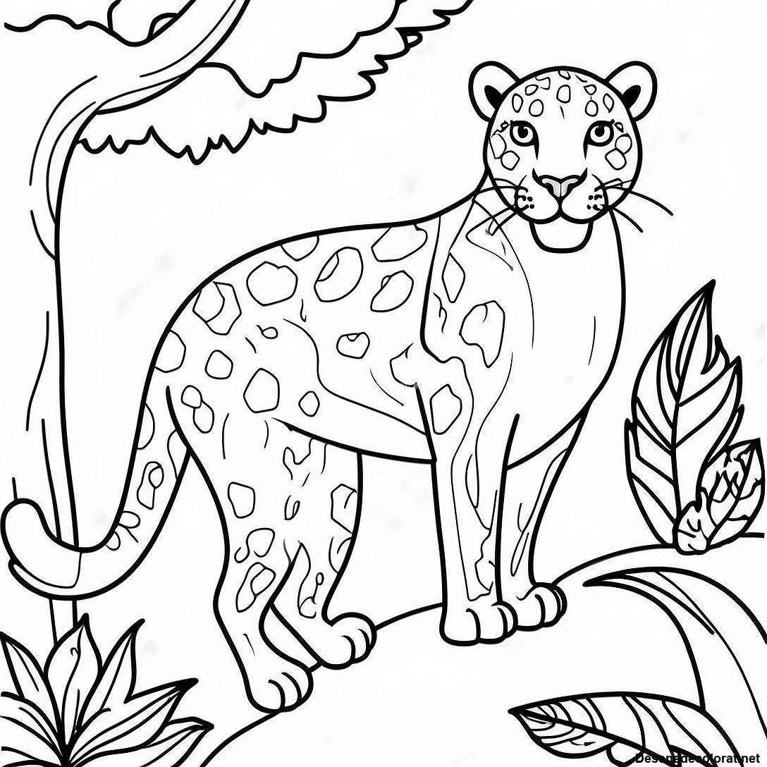 Descarcă PDF imprimabil pentru Pagina De Colorat Cu Leopard În Junglă