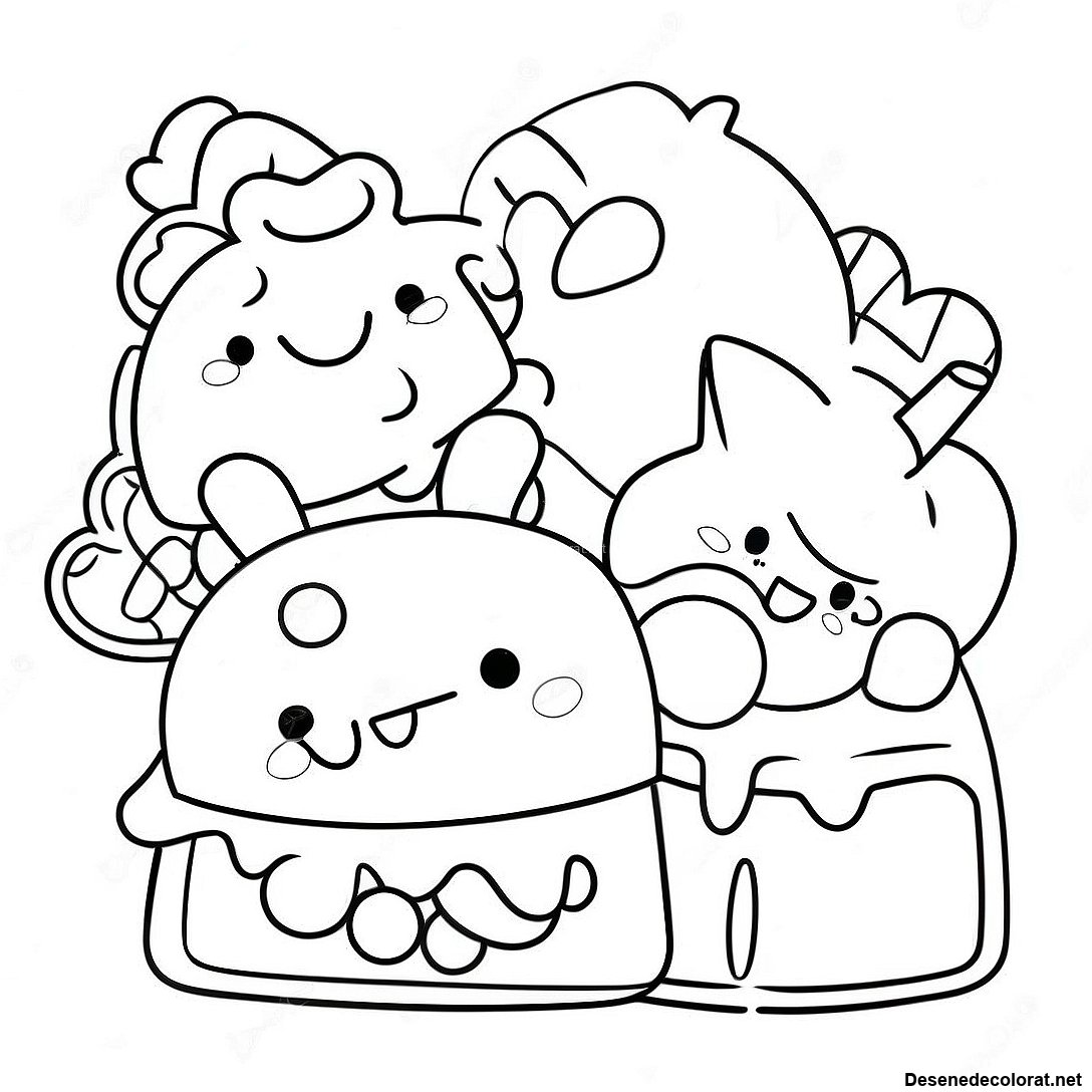 Descarcă PDF imprimabil pentru Pagina De Colorat Cu Num Noms Adorabili Prieteni Ai Mâncării