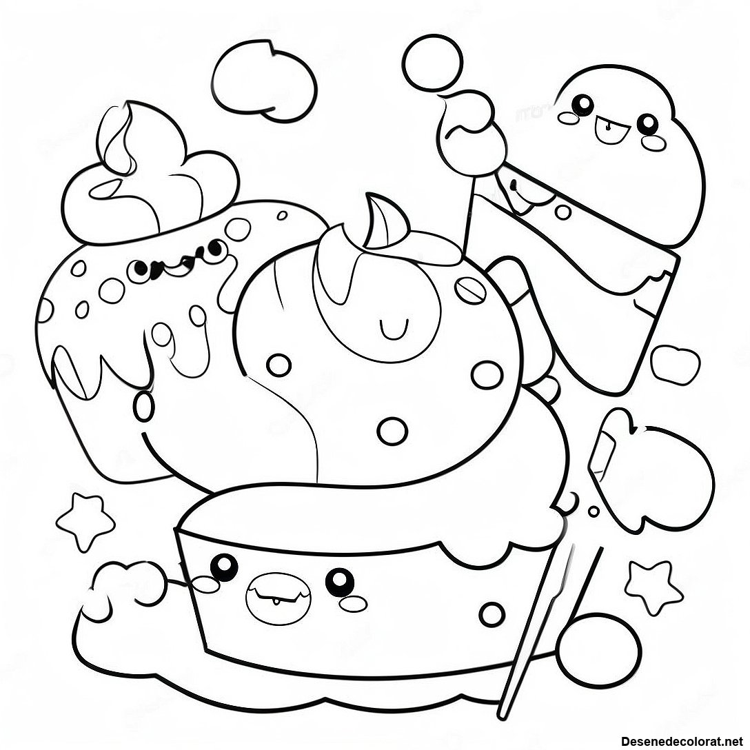 Pagina De Colorat Cu Num Noms Drăguți Și Cupcakes