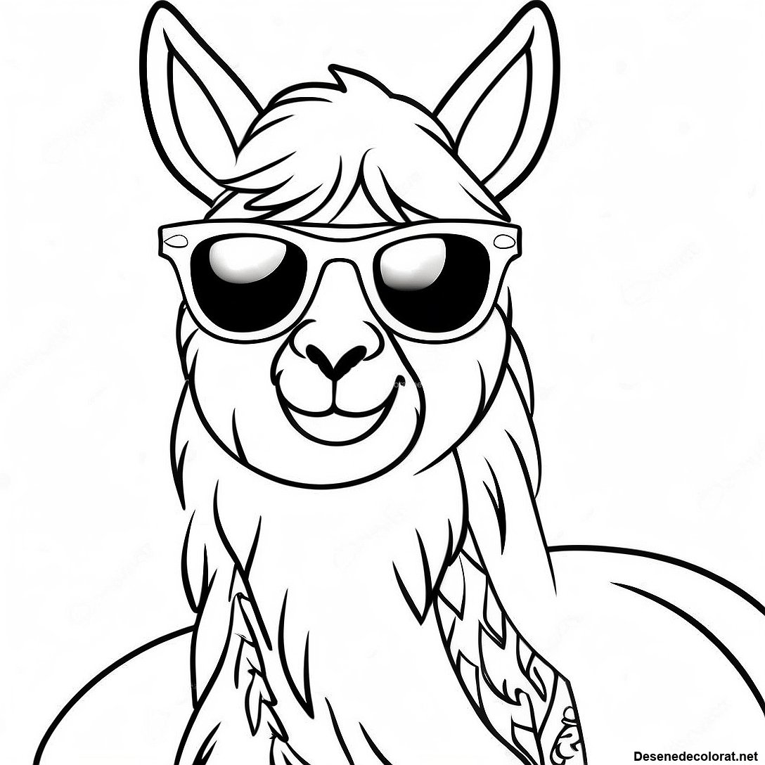 Descarcă PDF imprimabil pentru Pagina De Colorat Cu O Lama Amuzantă Purtând Ochelari De Soare