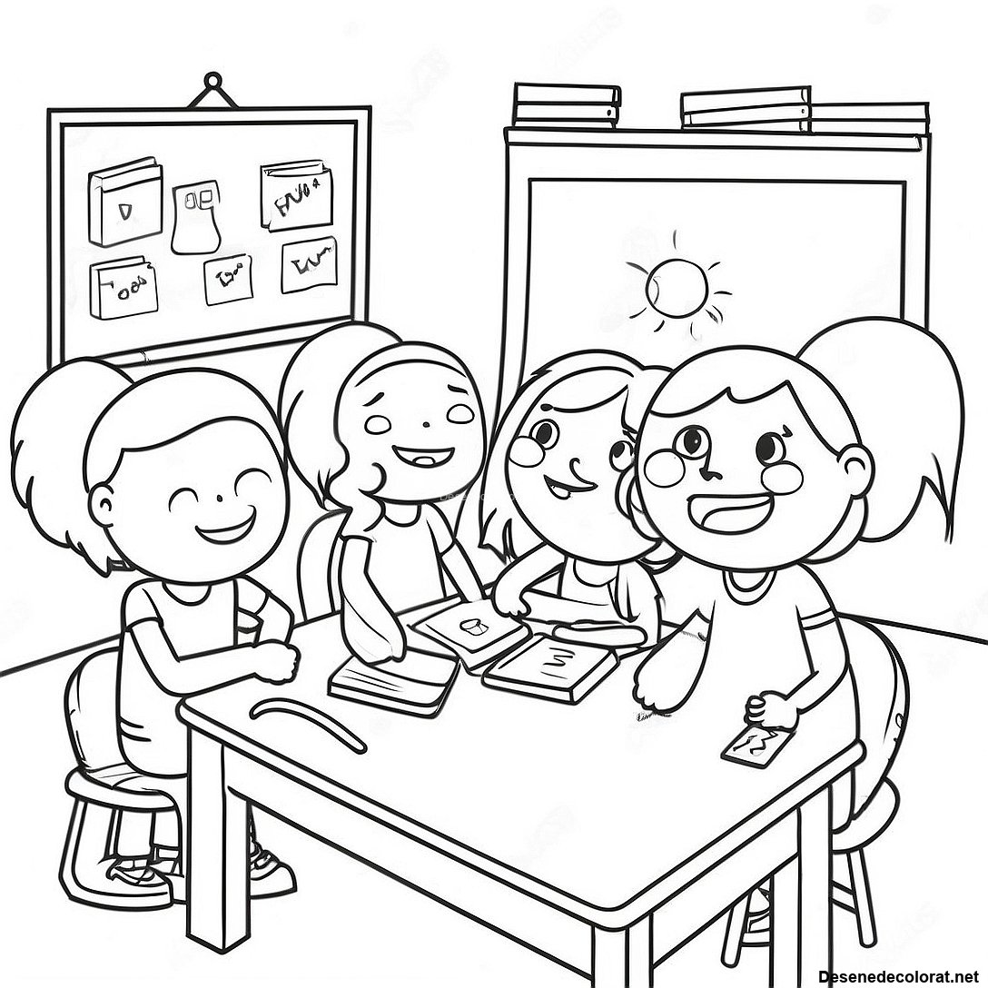 Descarcă PDF imprimabil pentru Pagina De Colorat Cu O Scenă Distractivă În Clasă