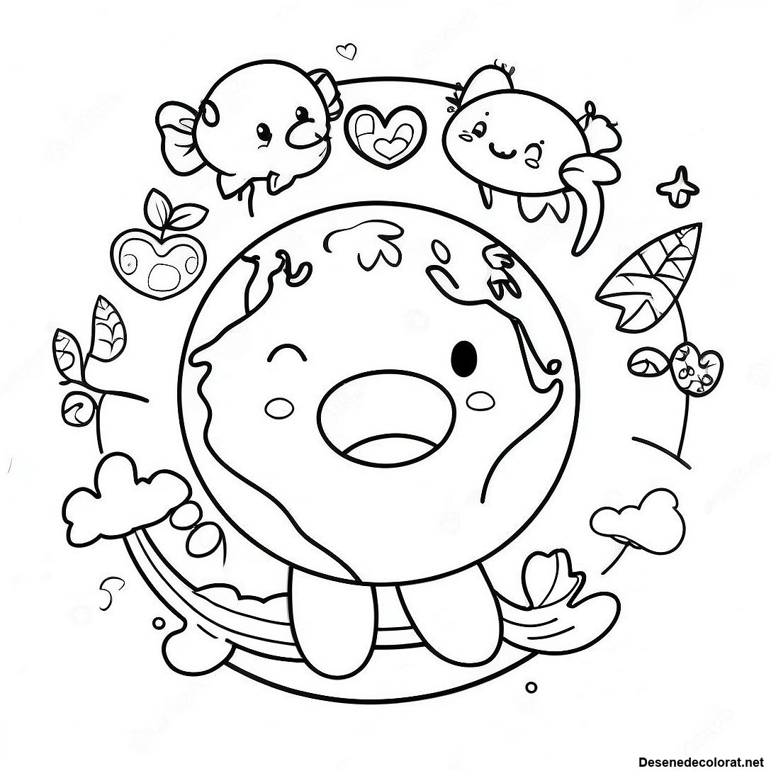 Descarcă PDF imprimabil pentru Pagina De Colorat Cu Pământul Fericit Înconjurat De Animale