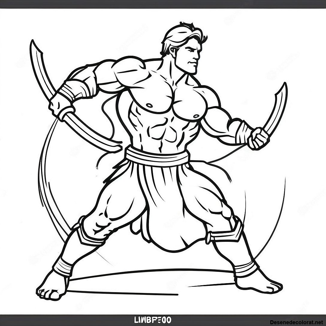 Pagina De Colorat Cu Postura Dinamică A Războinicului