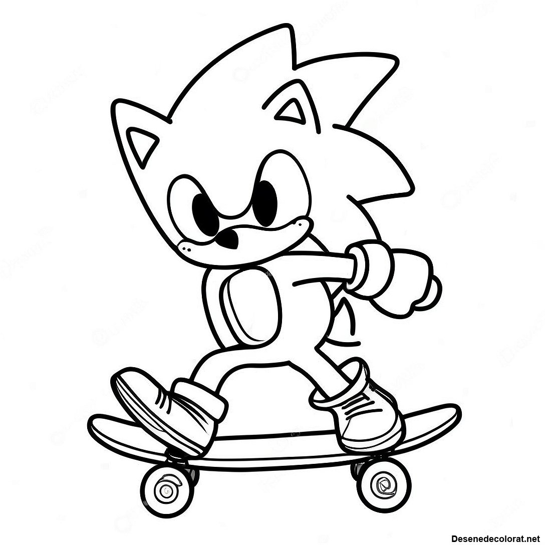 Descarcă PDF imprimabil pentru Pagină De Colorat Cu Sonic Crem Jucăuș Pe O Plăcuță De Skate