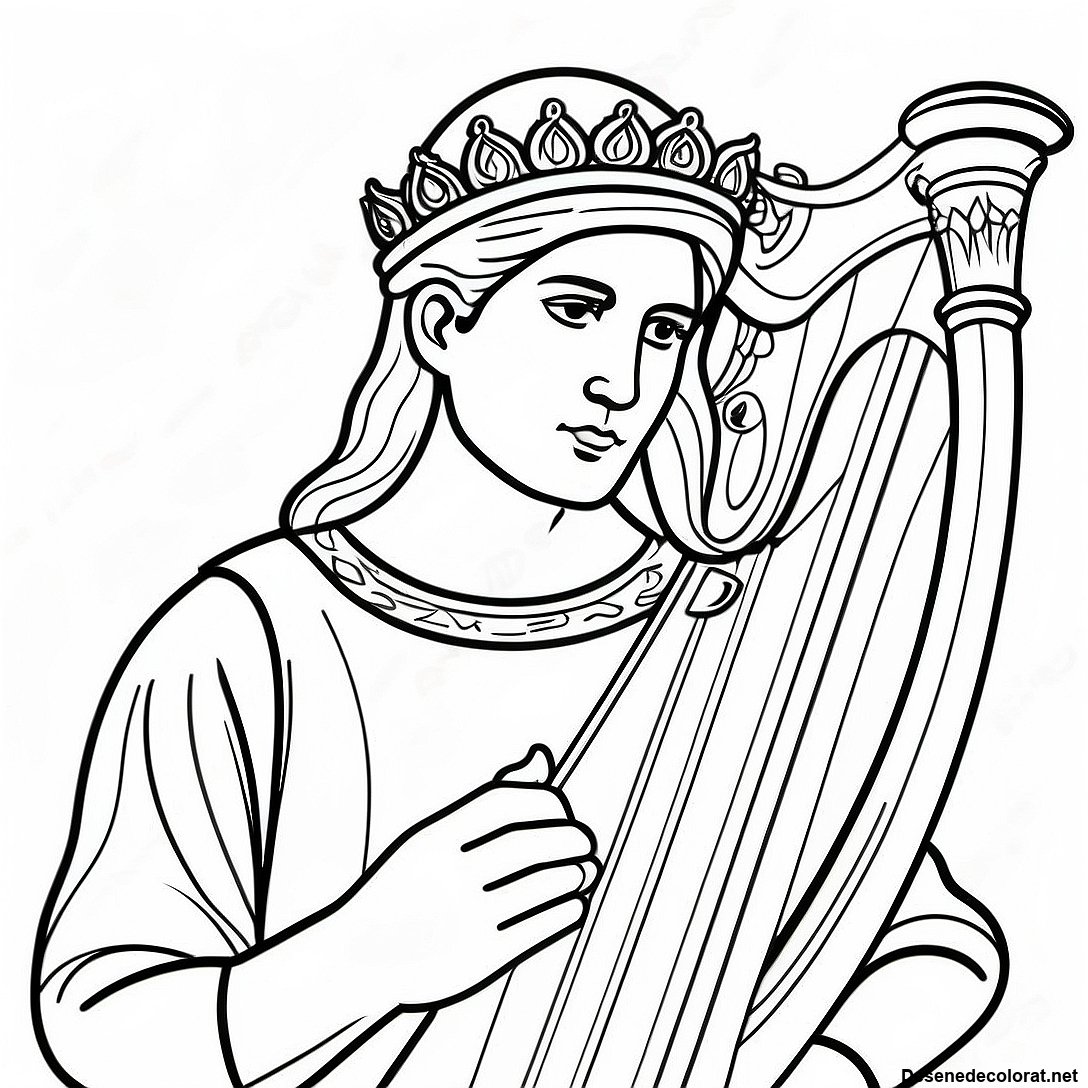 Pagina De Colorat Cu Tanarul Rege David Cu O Harpa 123276 57617