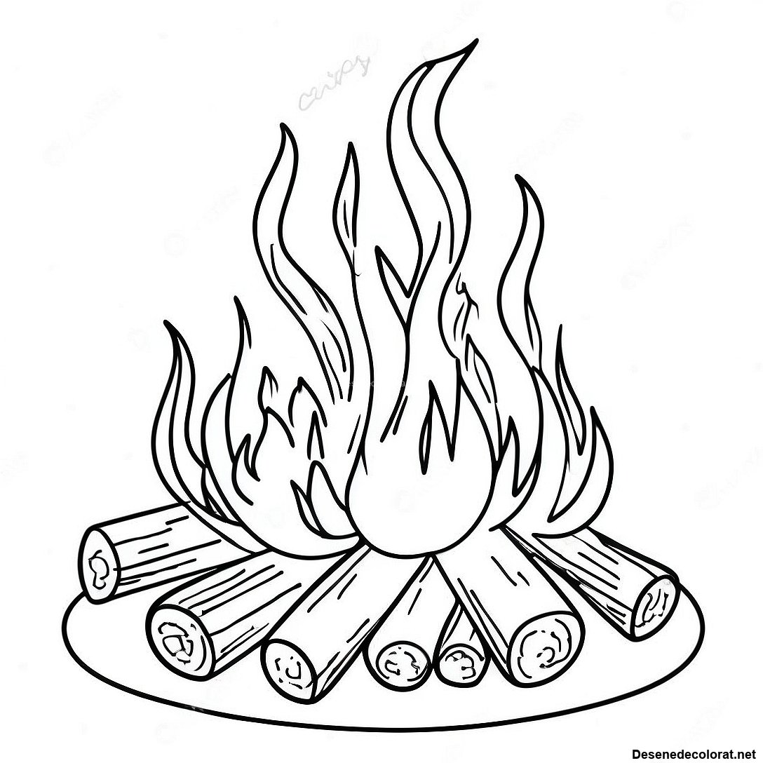 Descarcă PDF imprimabil pentru Pagina De Colorat Cu Un Foc De Tabără Strălucitor