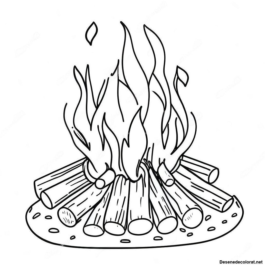 Descarcă PDF imprimabil pentru Pagina De Colorat Cu Un Foc De Tabără Strălucitor