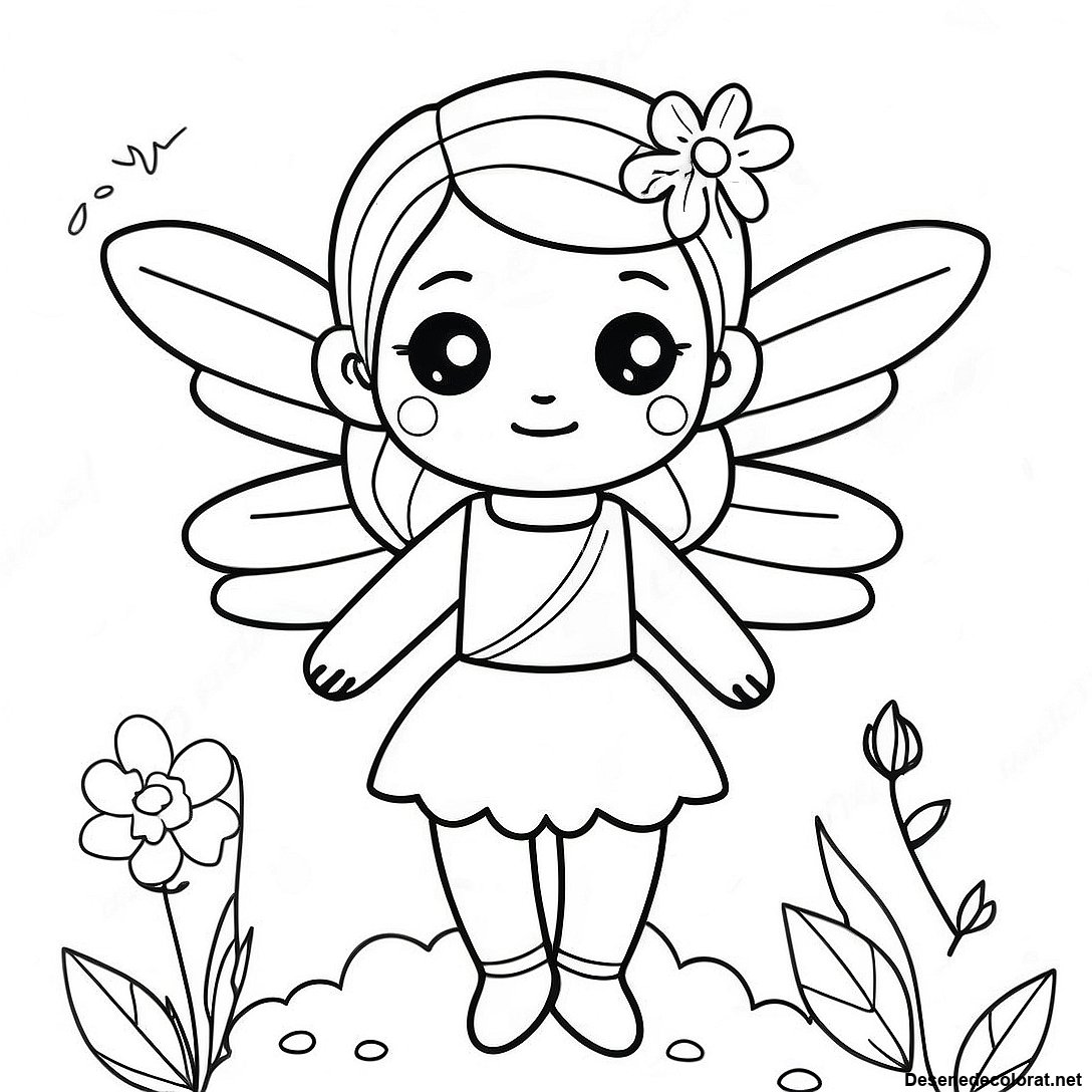 Descarcă PDF imprimabil pentru Pagina De Colorat Cu Zâna Drăguță Și Flori