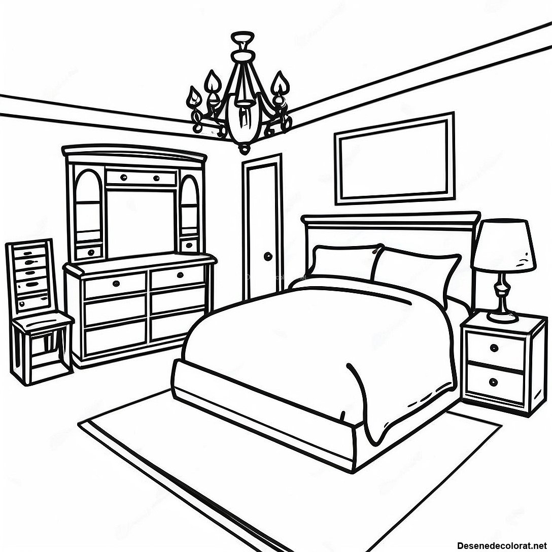 Descarcă PDF imprimabil pentru Pagina De Colorat Dormitor Realist Spațios