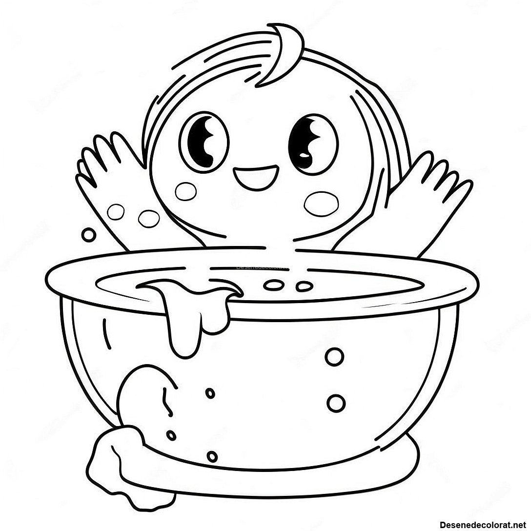 Pagina De Colorat Personaje Drăguțe Spălându-Se Pe Mâini