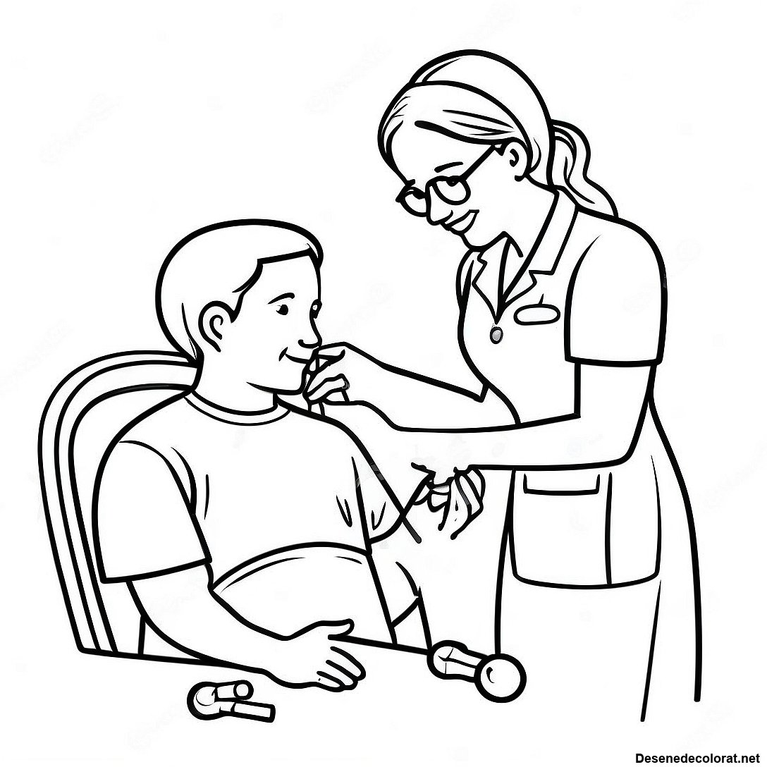 Descarcă PDF imprimabil pentru Pagini De Colorat Cu Asistentă Prietenoasă Ajutând Un Pacient