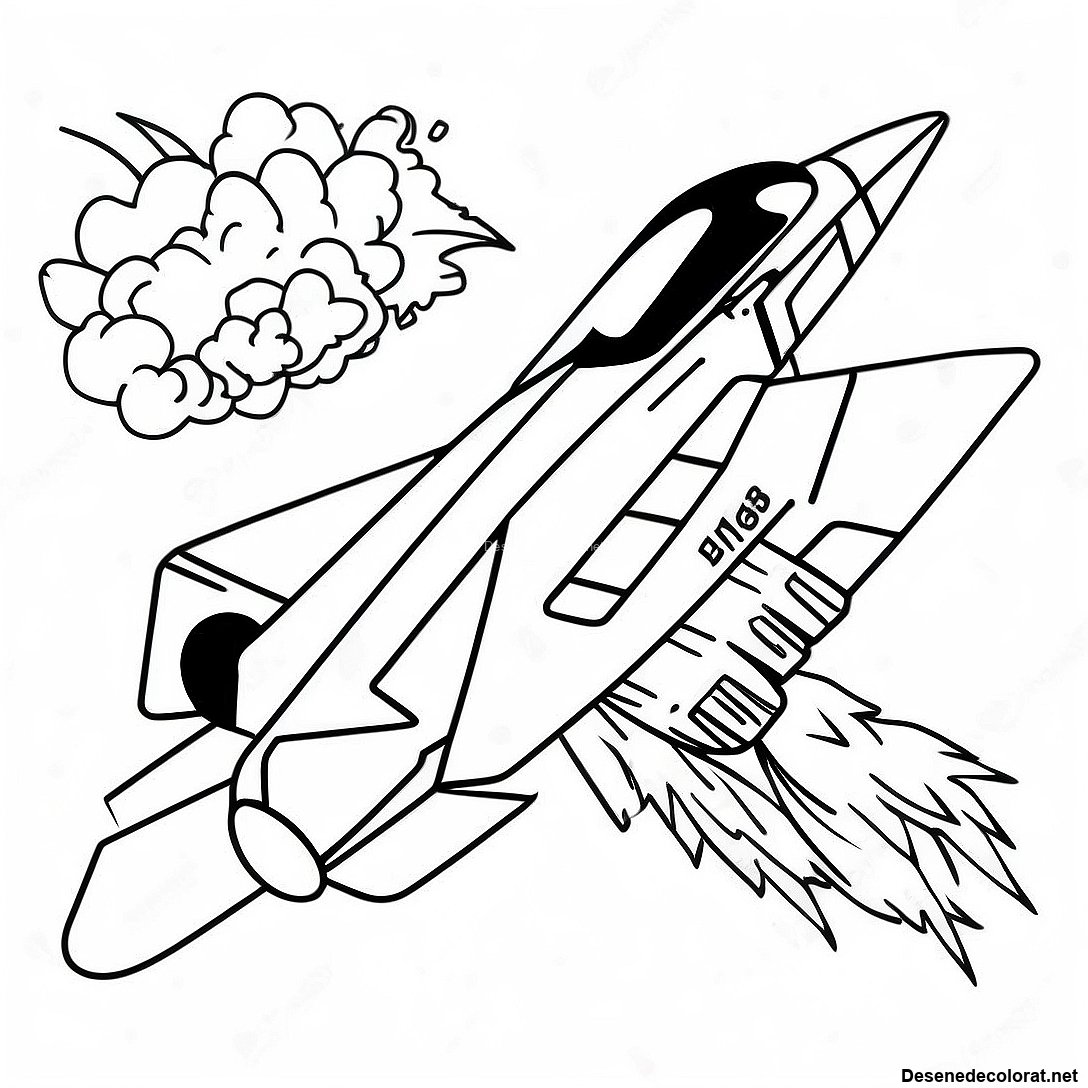 Descarcă PDF imprimabil pentru Pagini De Colorat Cu Avionul De Vânătoare F18 Cu Explozii