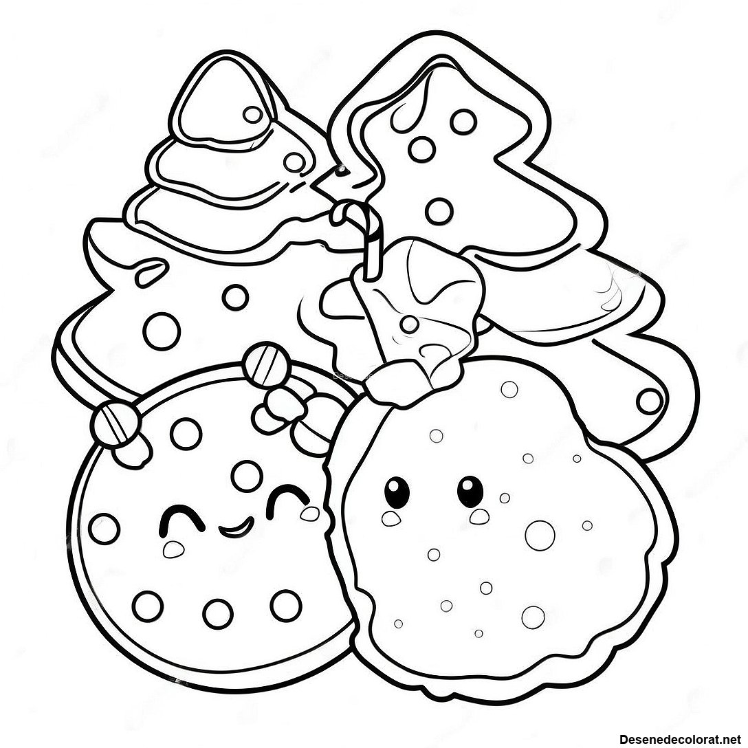 Descarcă PDF imprimabil pentru Pagini De Colorat Cu Biscuiți Drăguți În Formă De Brad De Crăciun