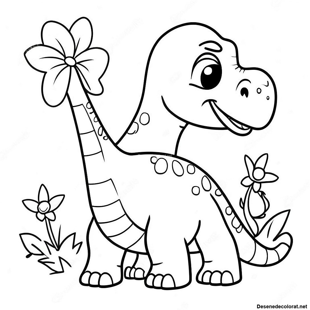 Pagini De Colorat Cu Brontosaurus Fericit Si Flori 123509 57803