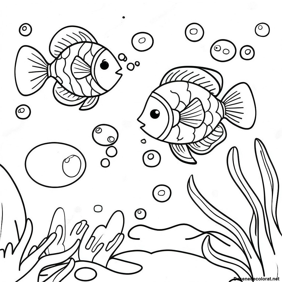 Descarcă PDF imprimabil pentru Pagini De Colorat Cu Bule Și Pești Sub Apă