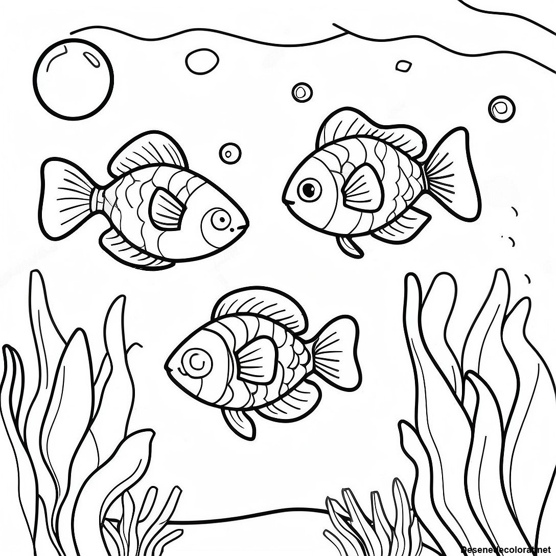 Descarcă PDF imprimabil pentru Pagini De Colorat Cu Bule Și Pești Sub Apă