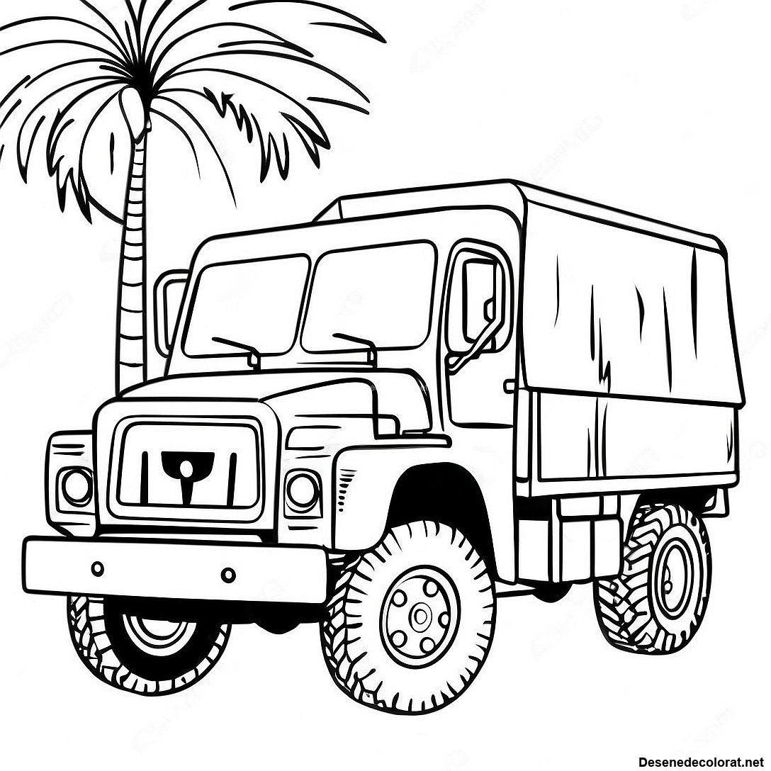 Descarcă PDF imprimabil pentru Pagini De Colorat Cu Camion Militar