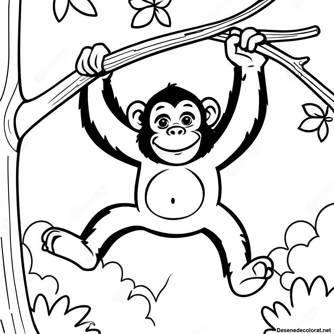 Pagini De Colorat Cu Cimpanzei Swinging Dintr-Un Copac