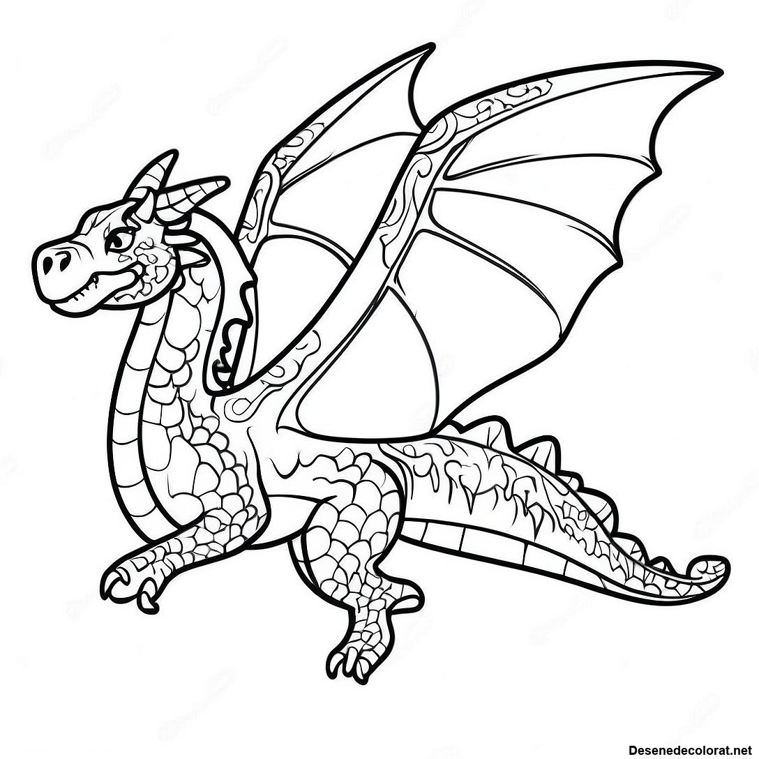 Descarcă PDF imprimabil pentru Pagini De Colorat Cu Dragonul Detaliat În Zbor