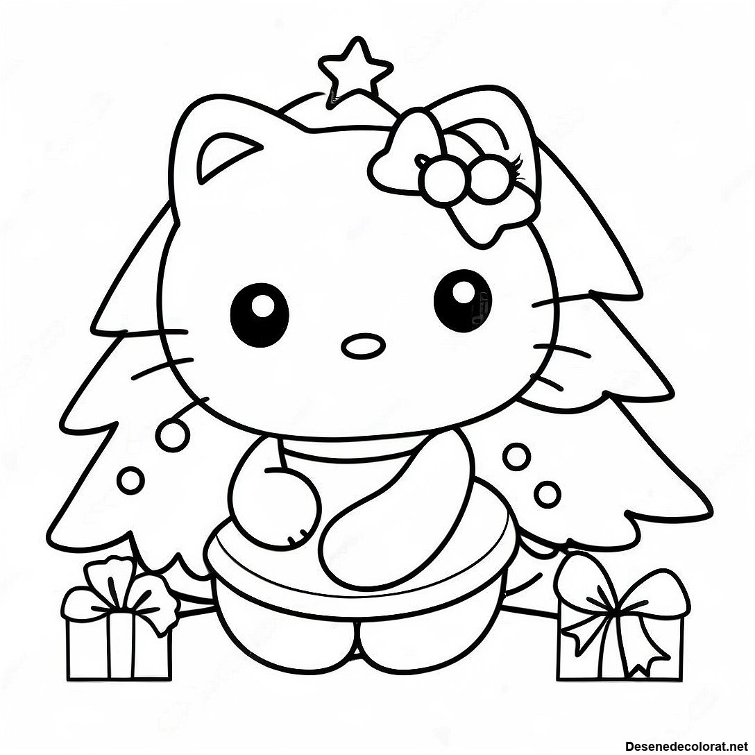 Pagini De Colorat Cu Hello Kitty Drăguță Și Brad De Crăciun