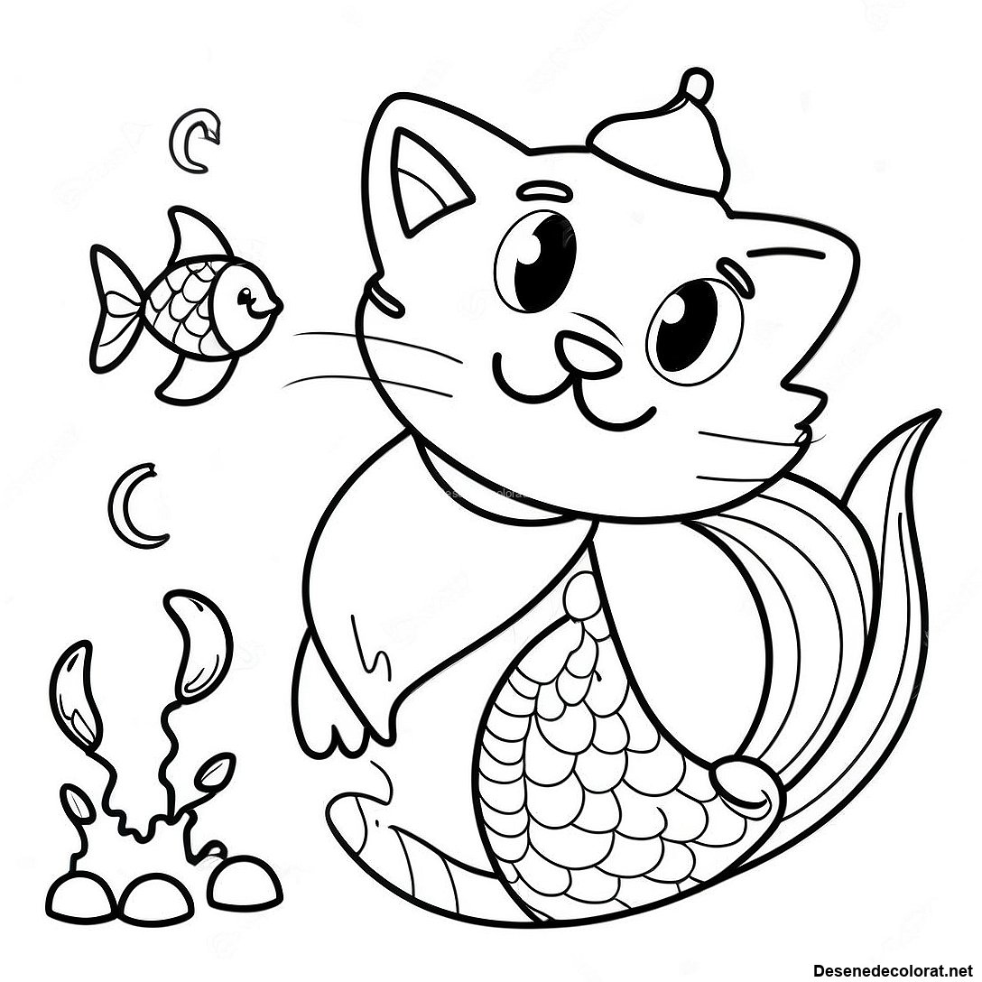 Pagini De Colorat Cu O Pisică Sirenă