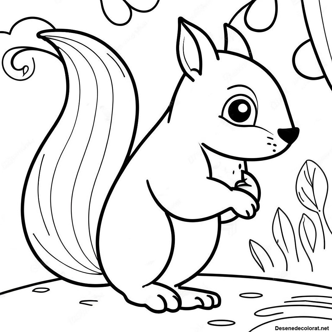Descarcă PDF imprimabil pentru Pagini De Colorat Cu O Veveriță Pufoasă Cu O Coadă Stufoasă